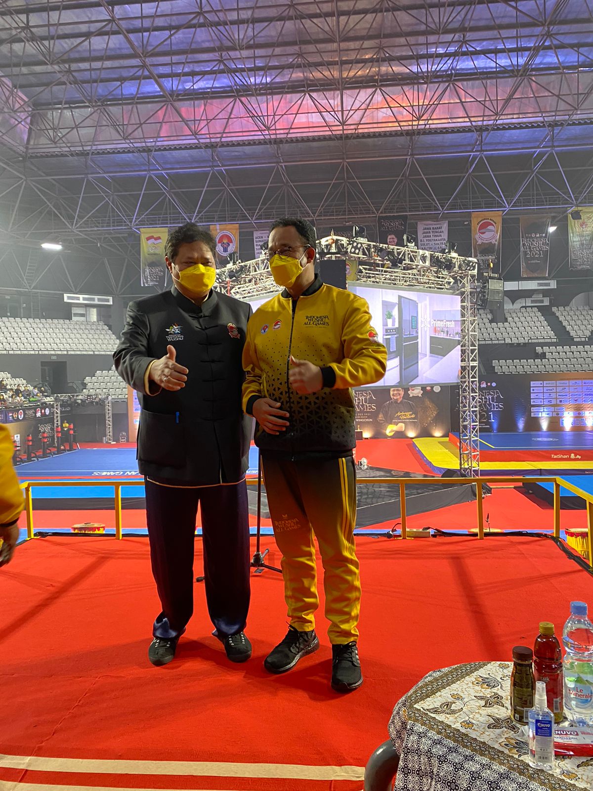 Dalam pertemuan itu, Airlangga Hartarto kapasitasnya sebagai Ketua Umum PB Wushu Indonesia.