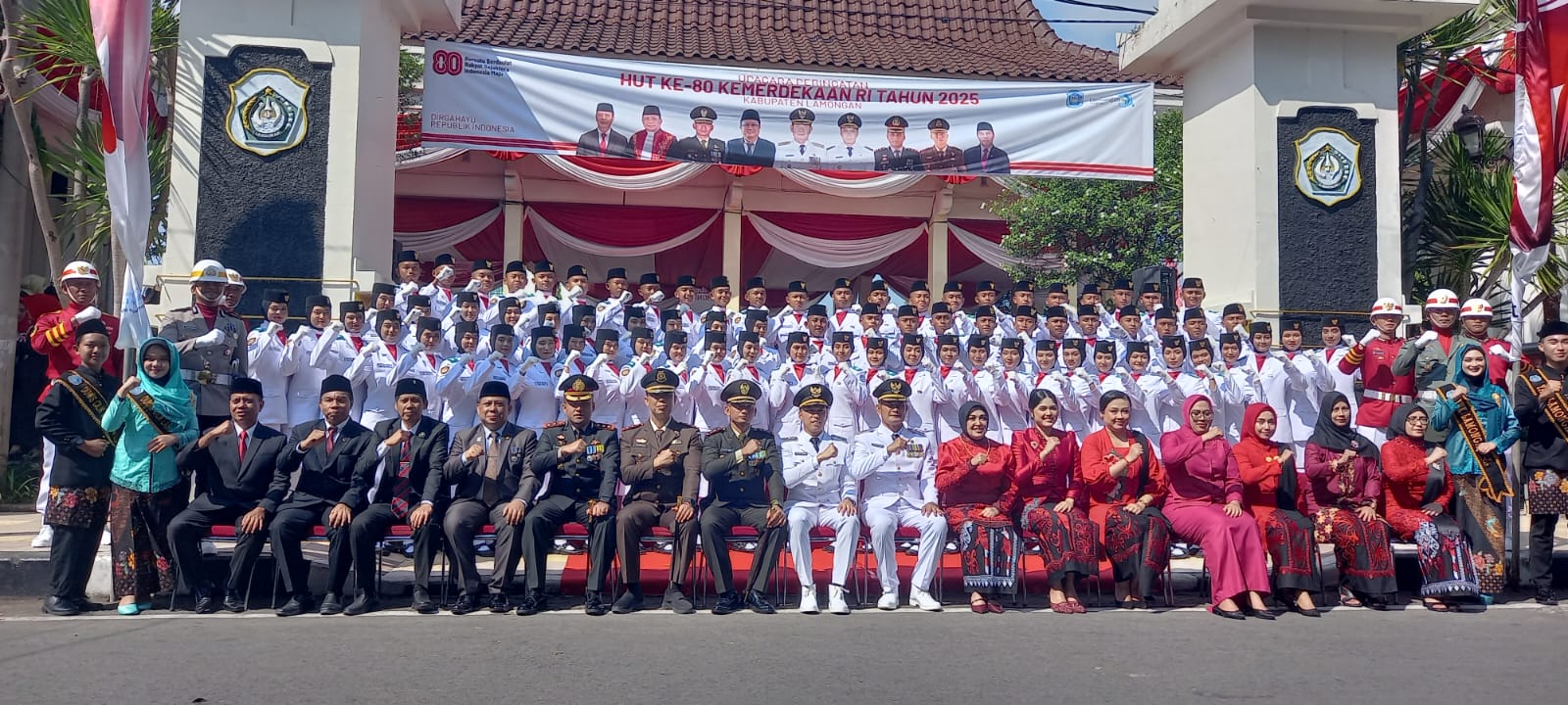 Pemerintah Kabupaten Lamongan sukses menyelenggarakan Upacara Detik-Detik Proklamasi dalam rangka memperingati Hari Ulang Tahun (HUT) ke-80 Republik Indonesia. Upacara berlangsung penuh khidmat pada Sabtu pagi, 17 Agustus 2025, mulai pukul 08.00 WIB, di Alun-Alun Lamongan yang berada tepat di depan Kantor Pendopo Kabupaten.