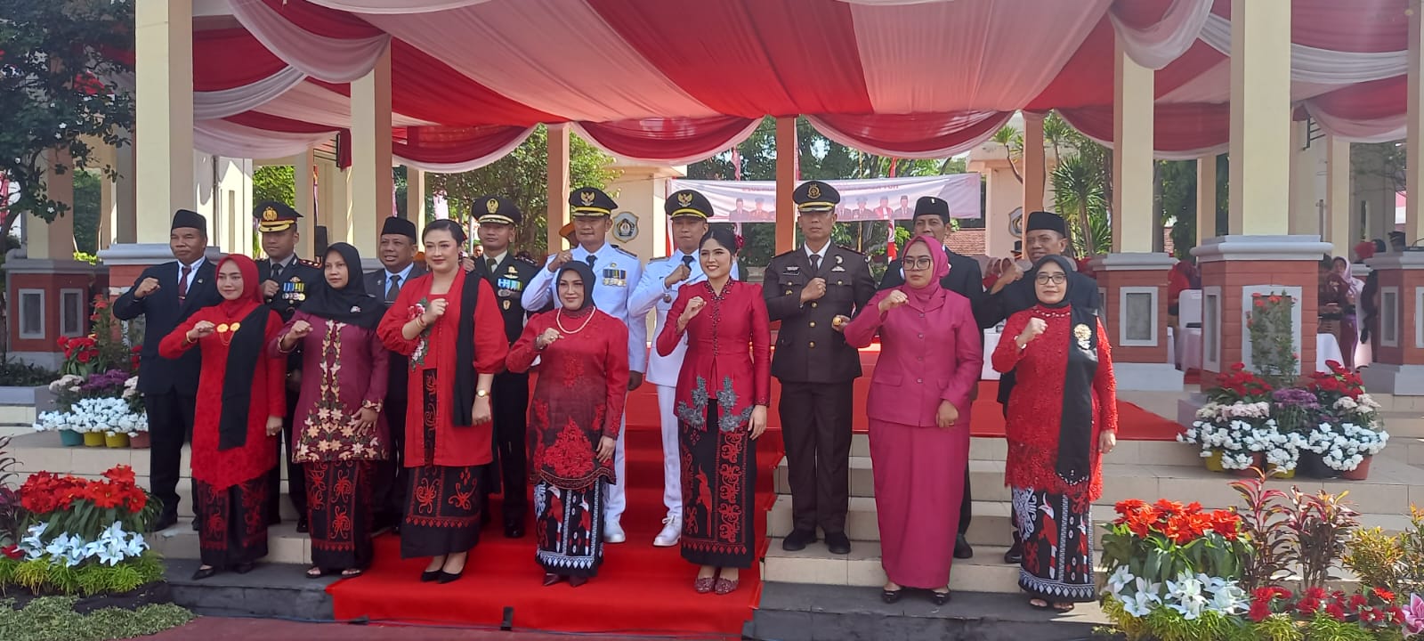 Upacara bendera yang dipimpin langsung oleh Bupati Lamongan, H. Yuhronur Efendi atau yang akrab disapa YES, menjadi momen bersejarah yang menghadirkan seluruh unsur penting masyarakat Lamongan. Hadir dalam kesempatan tersebut jajaran TNI, POLRI, Polisi Militer (PM), anggota DPRD, para pejabat instansi pemerintah daerah, tokoh agama, tokoh masyarakat, para veteran, keluarga pejuang kemerdekaan, tenaga pengajar, serta masyarakat umum.