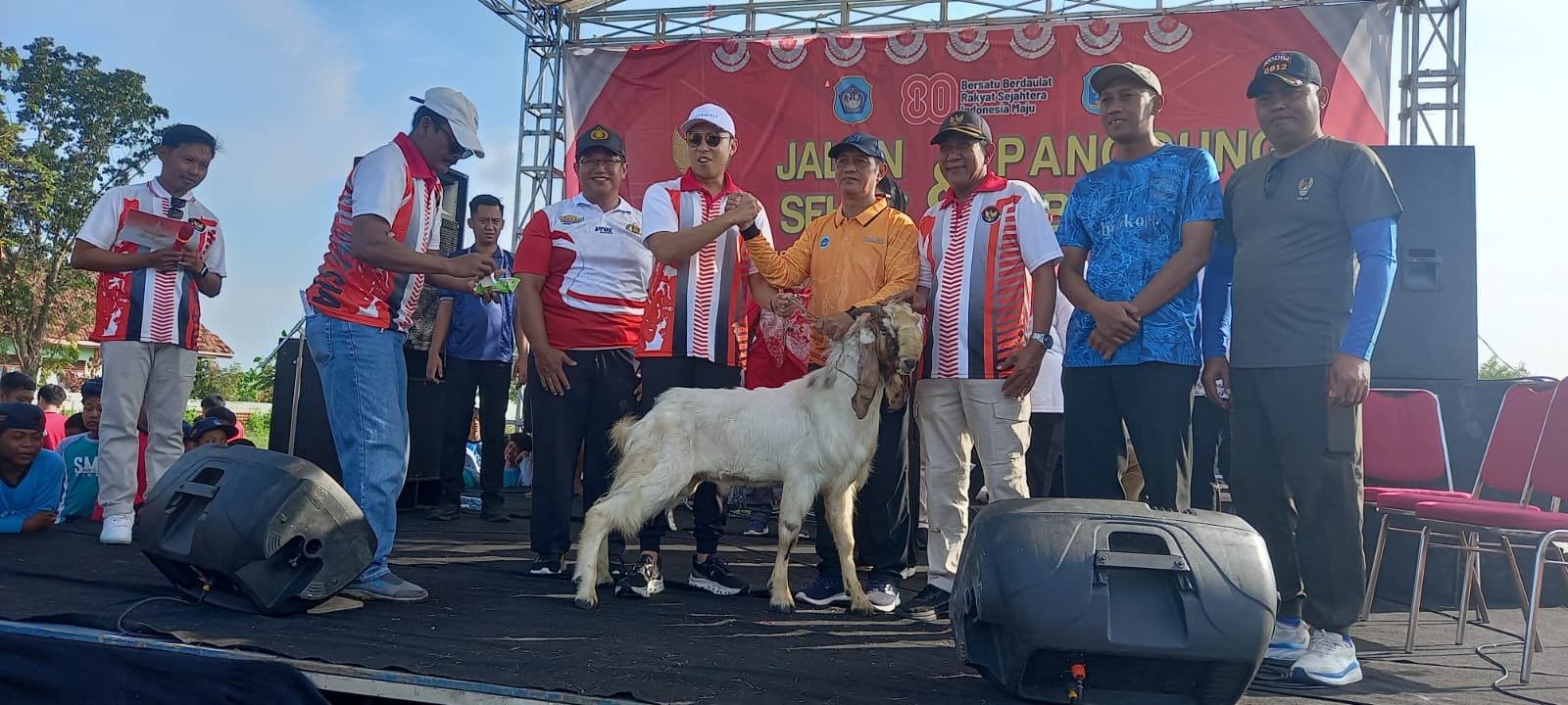 Kemeriahan makin terasa dengan hadirnya ratusan doorprize bagi peserta, mulai dari motor listrik hingga kambing. Hiburan musik dangdut turut mengiringi jalannya kegiatan, menambah riuh semangat kebersamaan.
