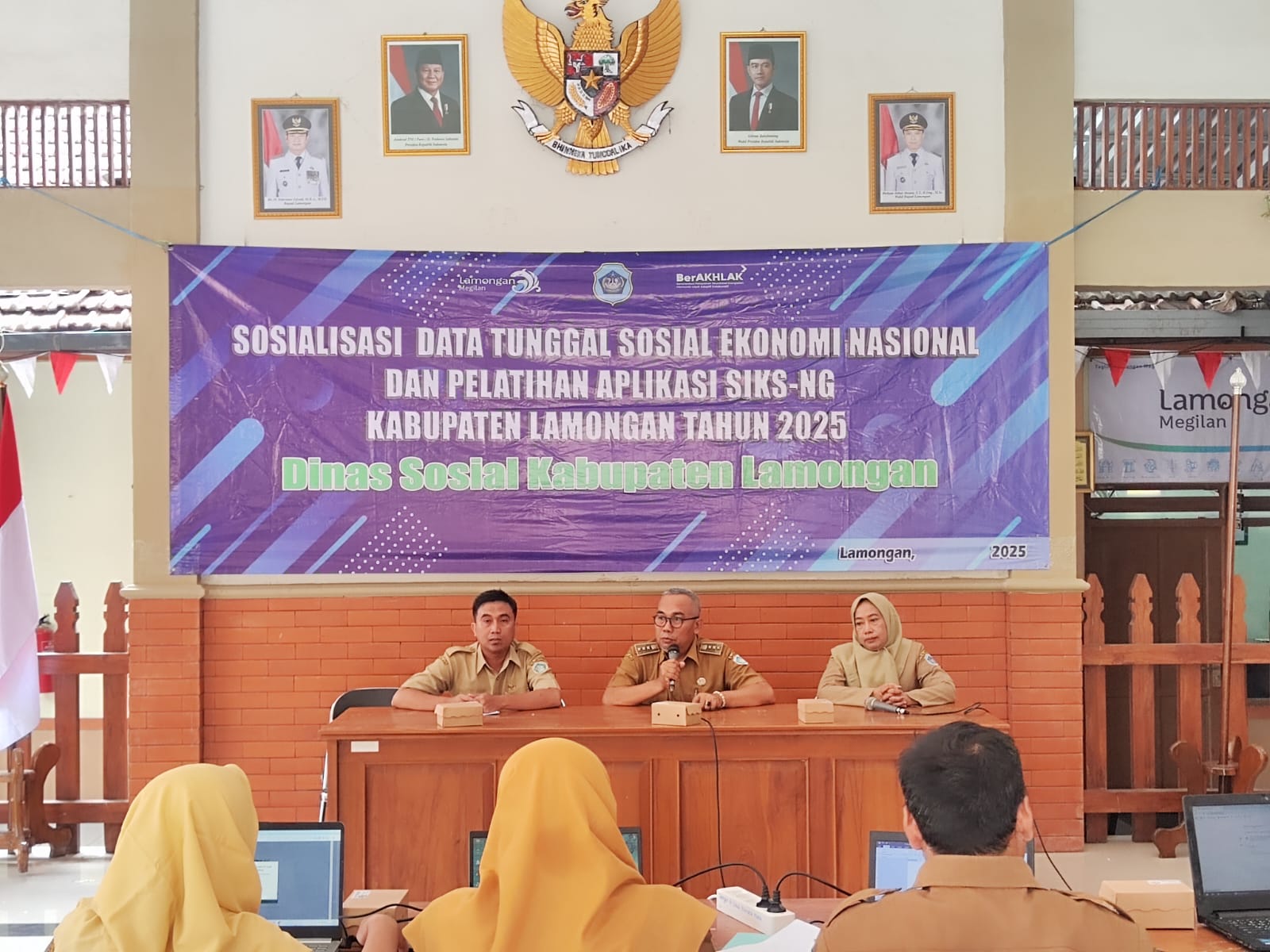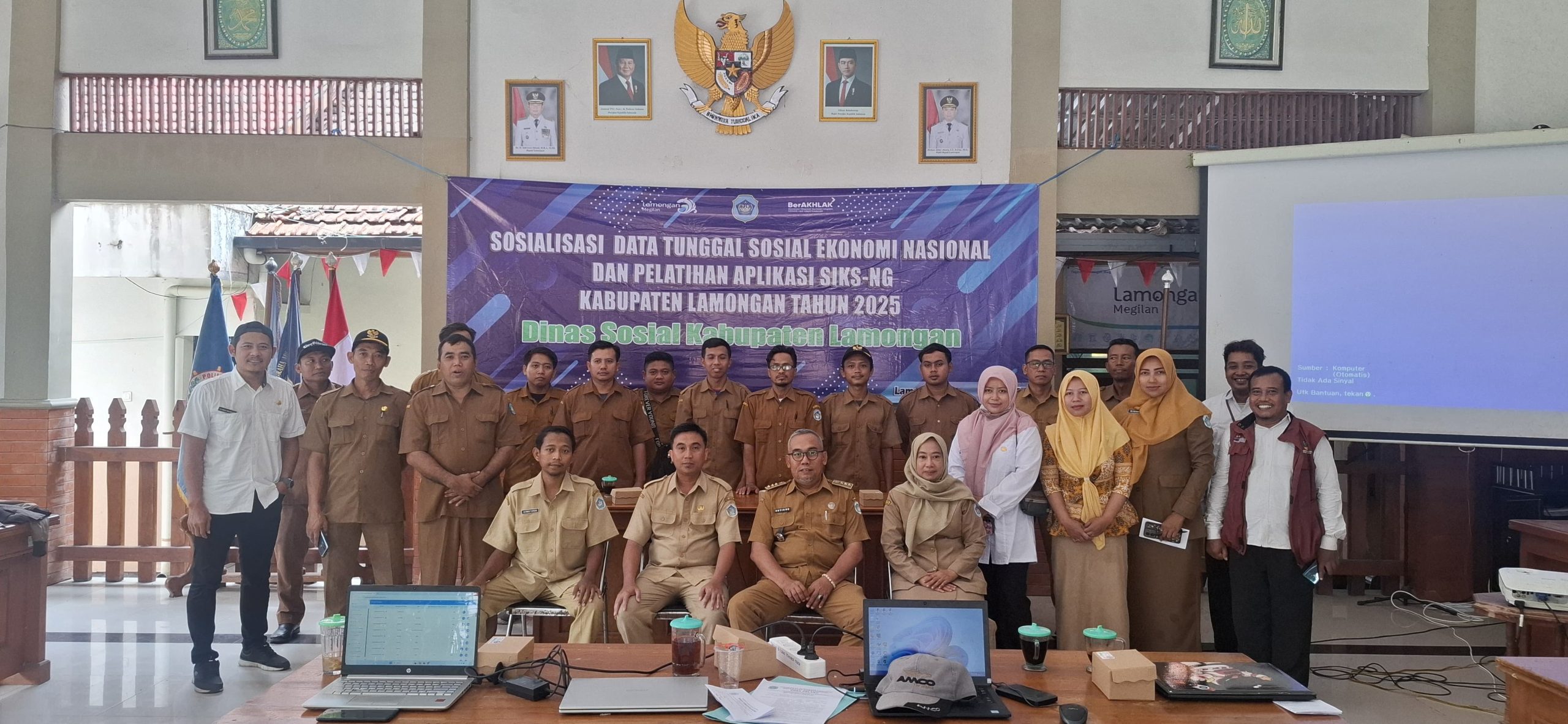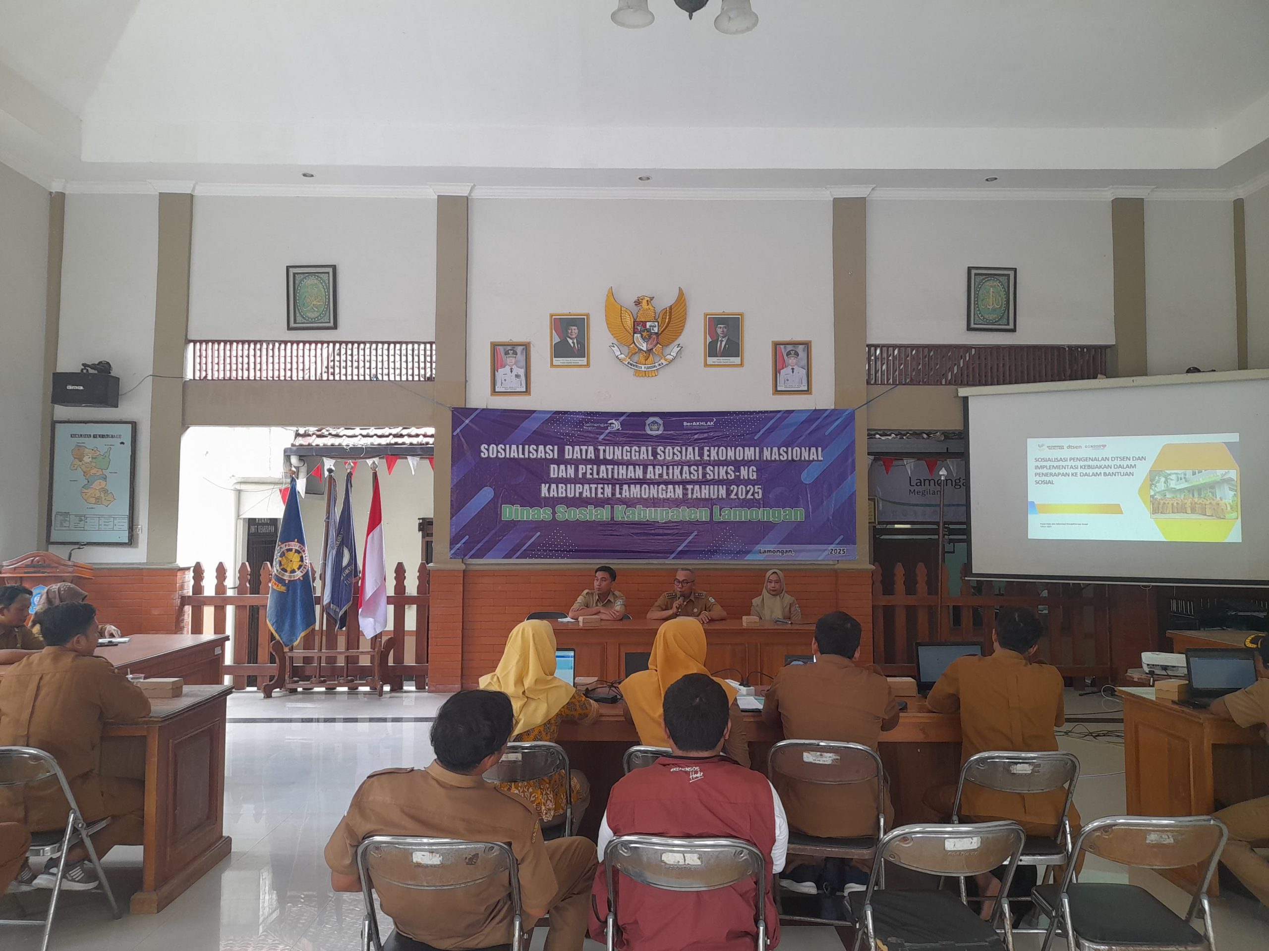 Dinas Sosial Kabupaten Lamongan menggelar kegiatan Bimbingan Teknis (Bimtek) Sosialisasi Data Terpadu Sosial Ekonomi Nasional (DTSEN) dan Pelatihan Aplikasi SIKS NG di Kecamatan Kembangbahu, Senin 06-10-2025 Kegiatan ini diikuti oleh 18 operator desa se-Kecamatan Kembangbahu bersama SDM Program Keluarga Harapan (PKH) setempat.