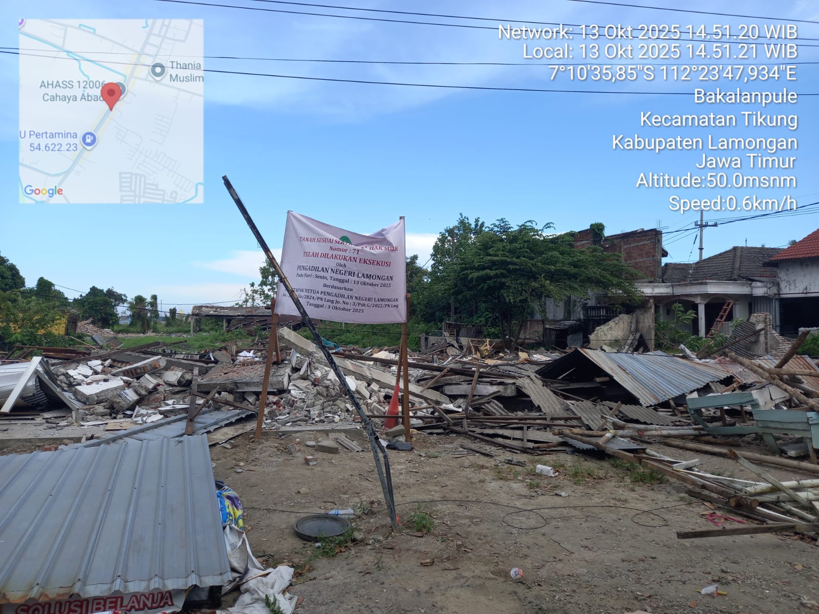 Namun demikian, pihak PN Lamongan tetap melaksanakan eksekusi pengosongan lahan dan pembongkaran bangunan karena dasar hukumnya telah berkekuatan hukum tetap (inkracht) sesuai putusan perkara nomor 3/Pdt.G/2022/PN Lmg.