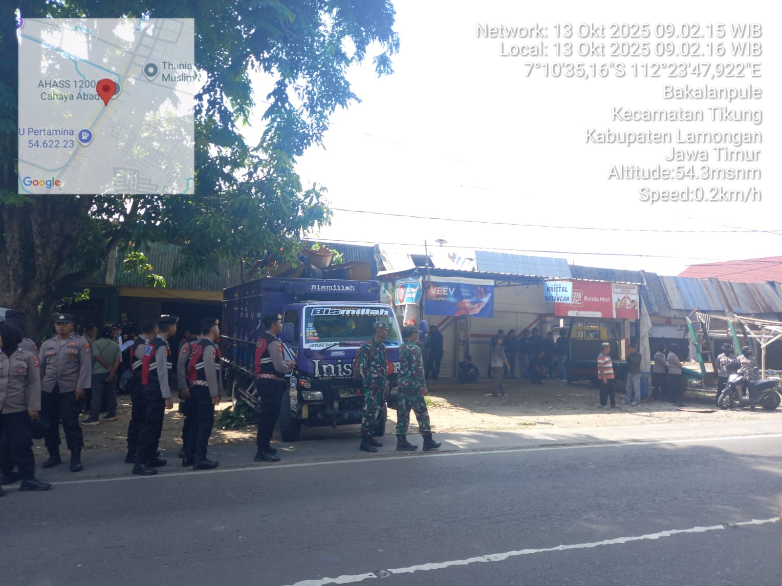 Proses eksekusi berlangsung di bawah pengamanan ketat aparat gabungan. Kapolsek Tikung AKP Anang Purwo Widodo, SH, memimpin langsung jalannya pengamanan bersama jajaran TNI Koramil Tikung 0812/04 yang dipimpin Kapten Cke Selamet Purwanto. Mereka dibantu personel dari Polres Lamongan, Brimob, Satreskrim, Samapta, Intelkam, Lantas, Polwan, dan Satpol PP.