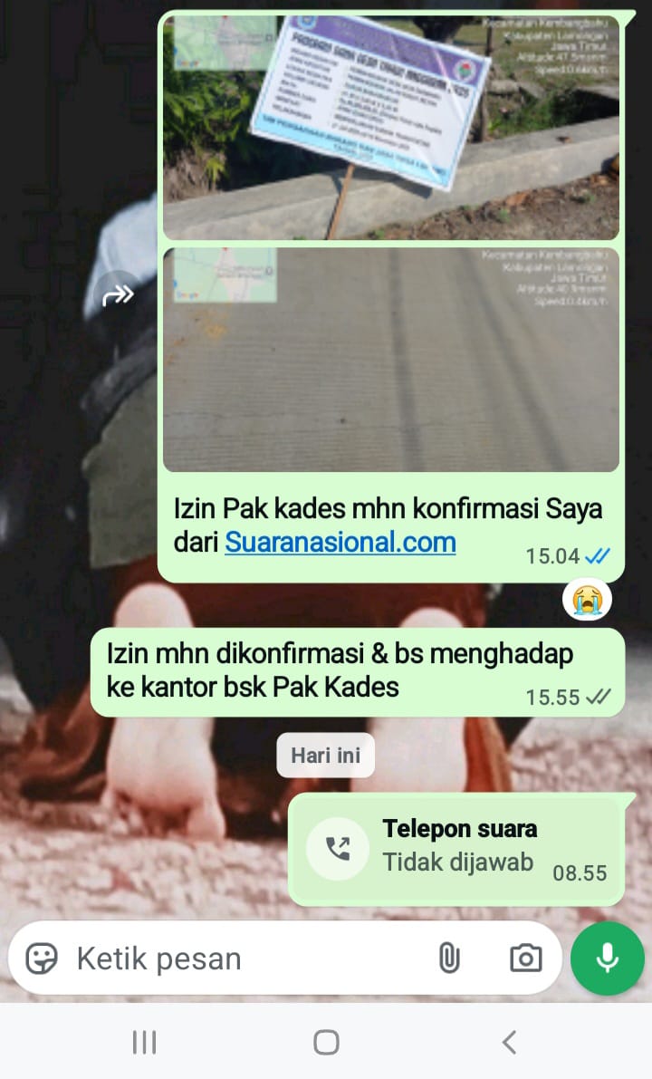 Sementara itu, Kepala Desa Lopang yang berinisial S belum memberikan klarifikasi resmi. Saat dikonfirmasi melalui pesan WhatsApp, sang kades hanya merespons dengan emoji 😭 tanpa penjelasan lebih lanjut. Ketika awak media mendatangi kantor desa, yang bersangkutan juga tidak berada di tempat.