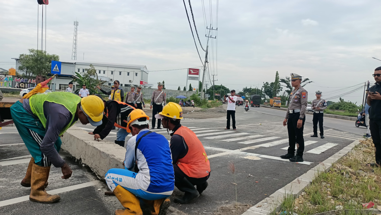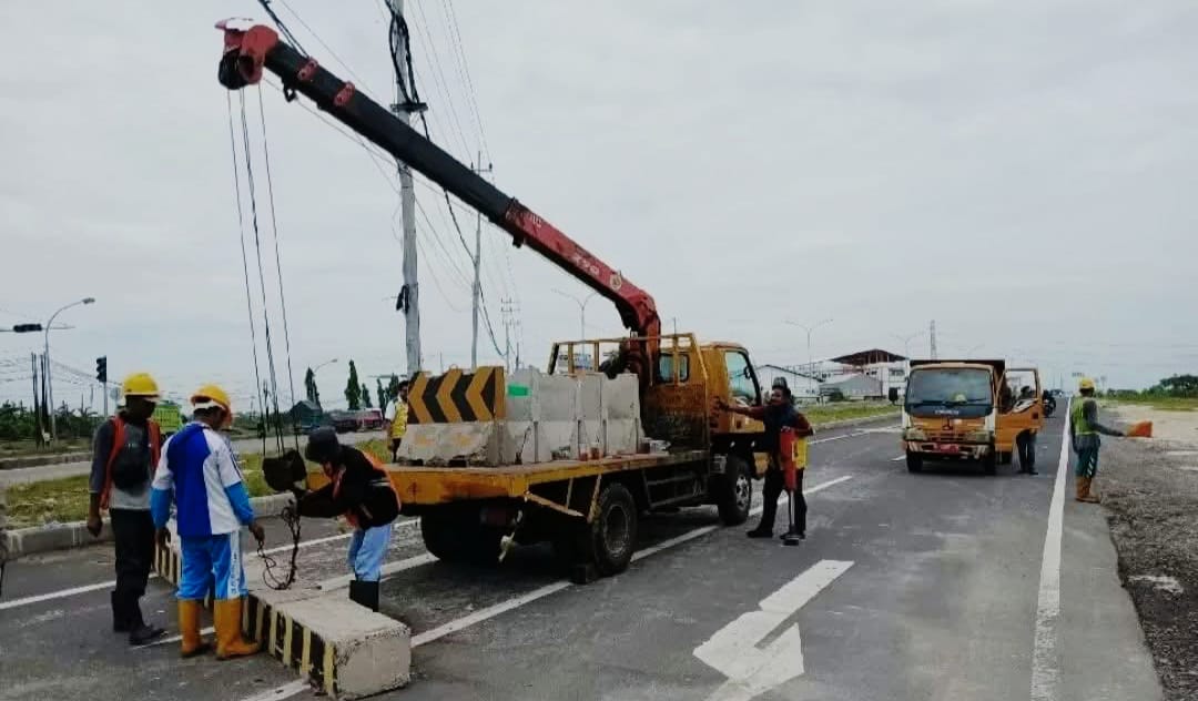 Dinas Perhubungan (Dishub) Lamongan bersama Balai Besar PPK 4.5 mulai melakukan pembukaan jalur dengan mengangkat balok beton (barrier) yang sebelumnya menutup akses jalan bagi pengguna kendaraan roda dua maupun empat.