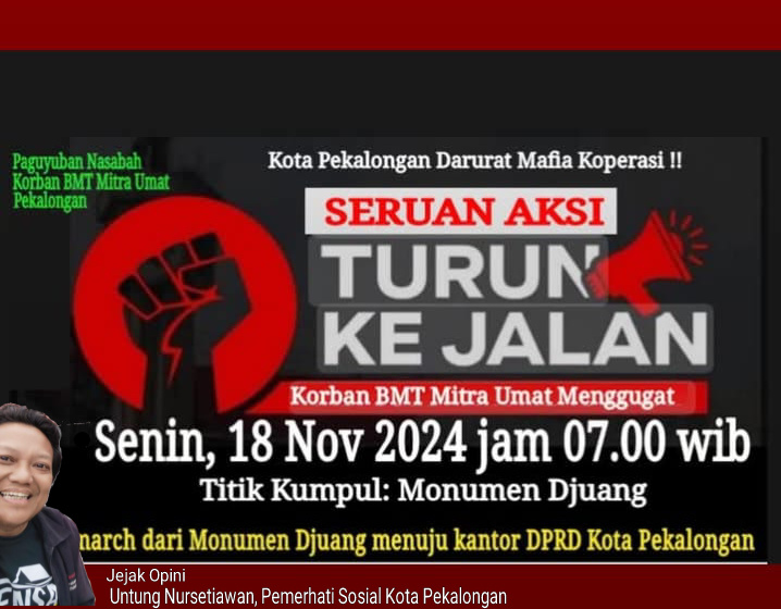Tepat setahun lalu, pada akhirnya para korban melakukan aksi demonstrasi karena semenjak kasus ini meledak bulan April 2024 tidak ada kejelasan tentang penyelesaian pencairan uang tabungan mereka. Hari itu, 18 November 2024 sejak pukul 06.00 WIB, ribuan korban kedholiman pengurus BMT Mitra Umat Pekalongan berkumpul di Monumen Djuang Pekalongan. Mereka datang bergelombang dengan satu harapan: keadilan. Dari monumen mereka longmarch menuju gedung DPRD Kota Pekalongan, gedung yang kala itu masih berdiri utuh sebelum peristiwa kebakaran, untuk menuntut dikembalikannya uang tabungan yang selama bertahun-tahun mereka titipkan di koperasi tersebut. Tabungan yang seharusnya aman justru raib tanpa kepastian.