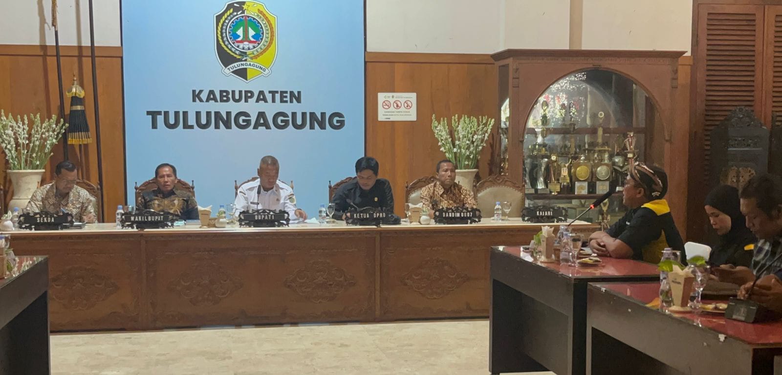 Acara tersebut dihadiri oleh: Bupati Tulungagung H. Gatut Sunu Wibowo, S.E., M.E., Wakil Bupati H. Ahmad Baharudin, S.M, Dandim 0807 Letkol Kav Mohammad Nashir, S.Hub.Int, Kapolres Tulungagung AKBP Muhammad Taat Resdi, S.H., M.I.K., MTCP, Kepala Kejaksaan Negeri Daniel De Rozari, S.H., M.H.Li, Sekretaris Daerah Drs. Hariadi, M.Si, Kepala Dinas Kesehatan Dr. Kasil Rohmad, MMRS., FISQua, Kepala Bakesbangpol (Plt.) Agus Prijanto Utomo, Kepala Satpol PP Sony Weli Ahmadi, S.STP., M.M.