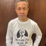 Berkaus putih dengan gambar Habib Rizieq Syihab dan tulisan “Revolusi Akhlak Bersama Imam Besar HRS,” pria itu berbicara dengan lantang, Selengkapnya
